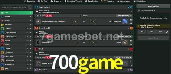 A aposta 700game oferece aos jogadores a experiência mais conveniente de apostas em eSports!